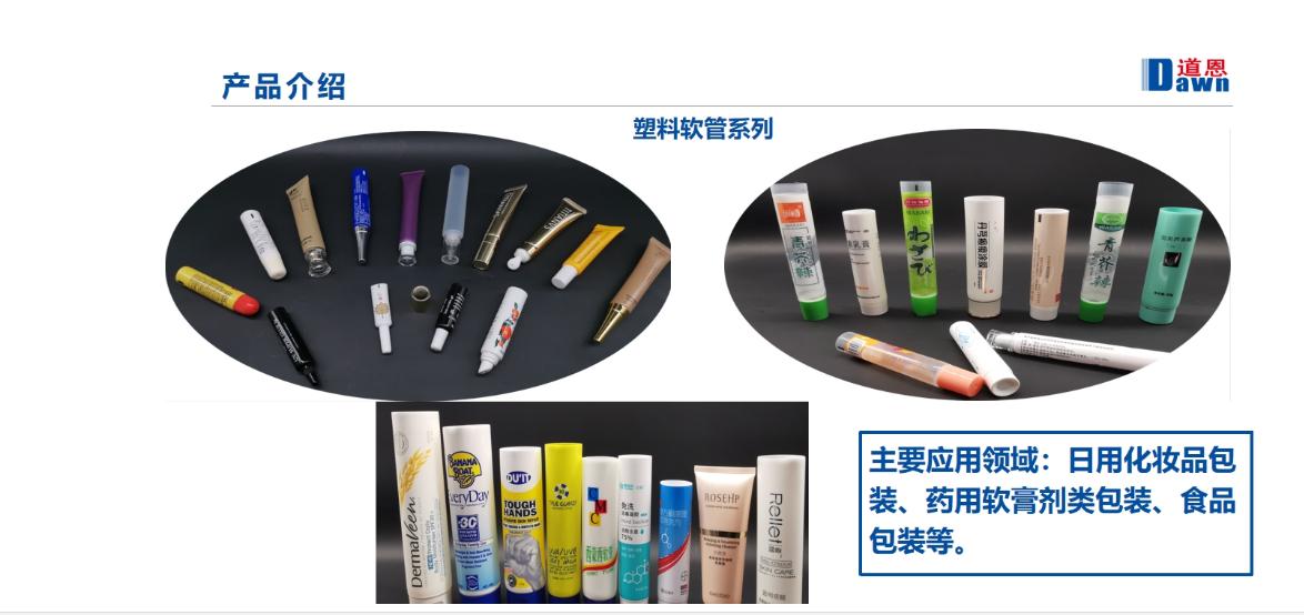 The company is mainly manufacturing plastic packaging products such as plastic soft tubes, plastic bottles, plastic caps and so on.The products are mainly used in pharmaceutical packaging, food packaging, health care packaging, daily necessities packaging.